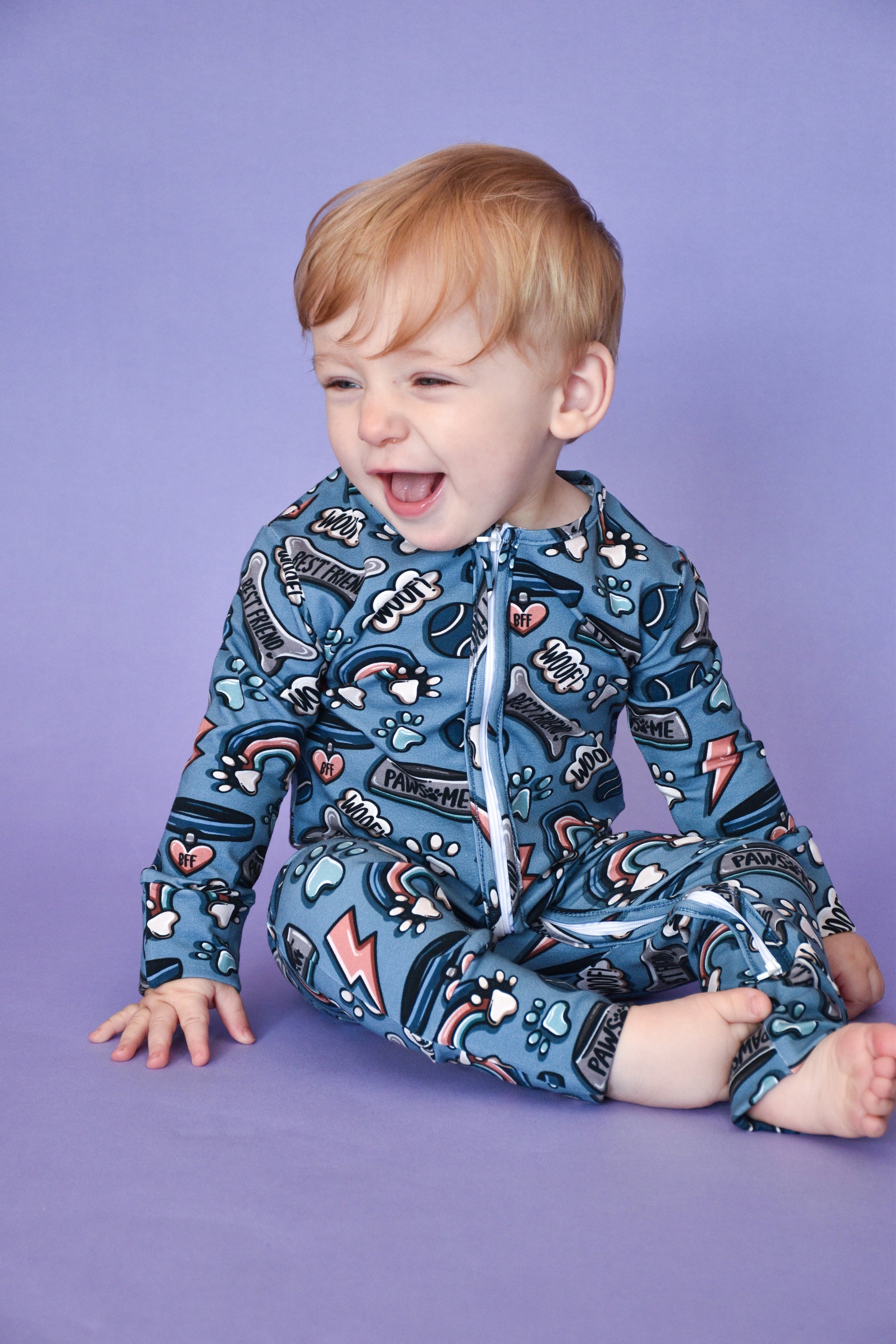 Ready To Post Blue Doggy Friends Standard Jersey Zipped Sleepsuits
